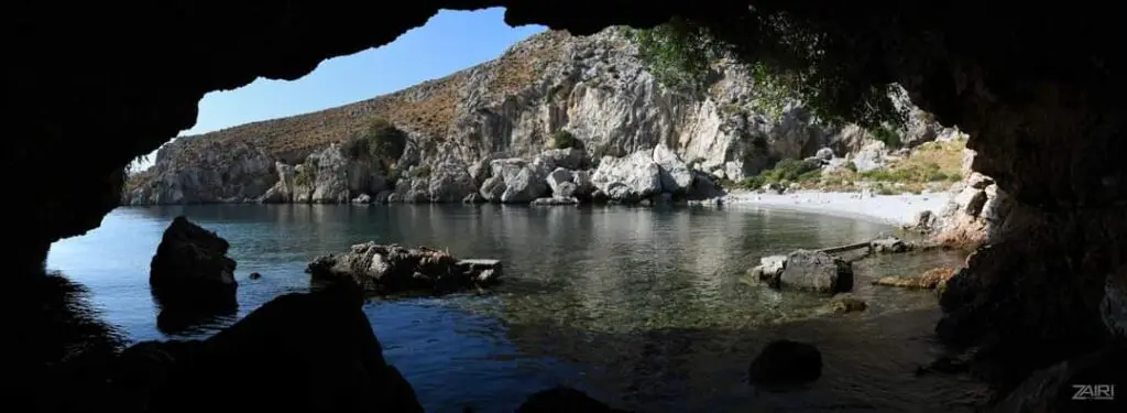 When we arrived, a breathtaking natural cave showed up, starting at the sea’s edge and going deep into the water. My first sight of a mix of colors dancing as sunlight entered the cave, lighting up both water and rocks, left a lasting impression. There’s speculation that this cave might have been the home of the mortal Gorgon Medusa, daughter of Phorcys and Ceto—a fascinating story I’ll share in a future post, as local fishermen still whisper her name today, calling her Gorgo.