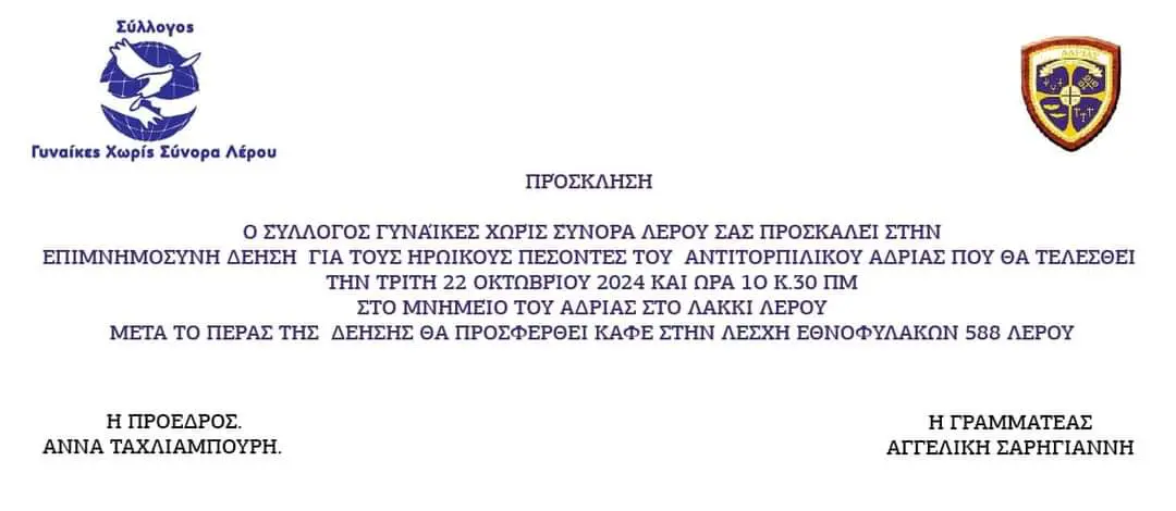 cordially invites you to the memorial service for the heroic fallen of the destroyer ADRIAS,