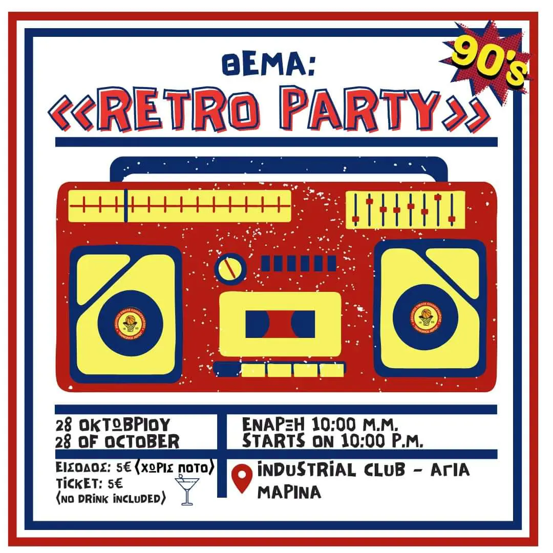 It will take place on Saturday, October 28th, at 10:00 PM at INDUSTRIAL CLUB in Agia Marina.
